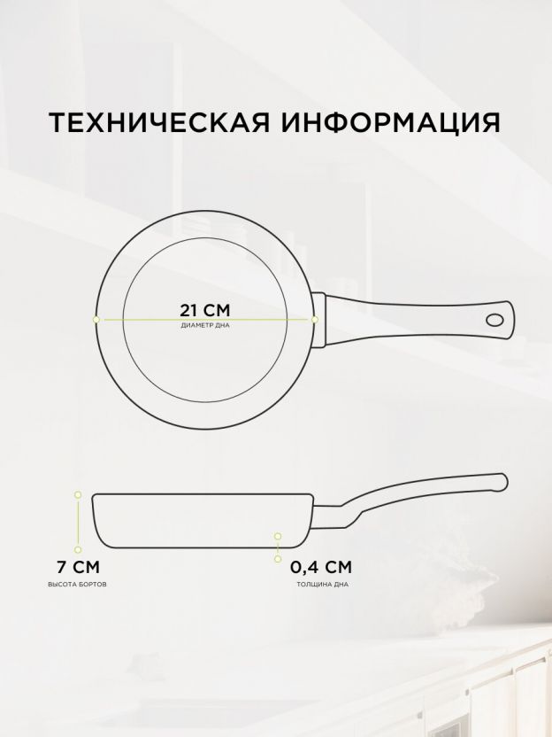 Диаметр по верху — 28 см, диаметр дна — 21 см, высота борта — 70 мм, вес — 1,4 кг. Это оптимальный размер для семейного приготовления.