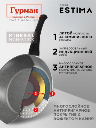 Сковорода из литого алюминия 28 см с гранитным антипригарным покрытием Estima Гурман: готовьте без пригорания, экономьте время и силы на кухне!