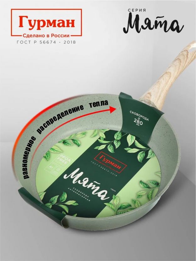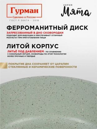 Сковорода литой алюминий, 28 см, антипригарное покрытие, Гурман, Мята, индукция, ГМ2801МЛ