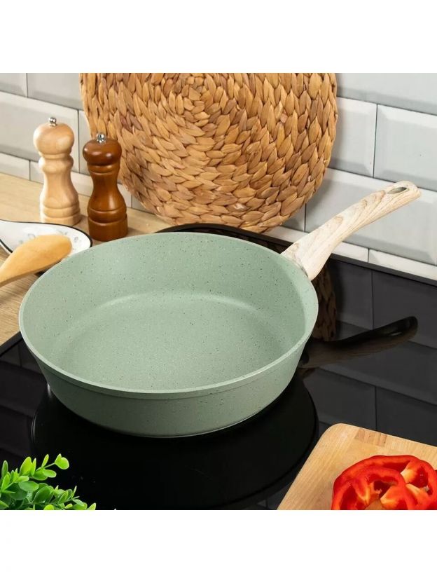 Сковорода 28 см из литого алюминия с гранитным антипригарным покрытием «Гурман Мята»: идеальный выбор для индукции, дома и дачи — готовьте без пригорания и усилий.