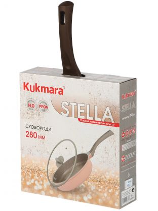 Сковорода литой алюминий, 28 см, антипригарное покрытие, Kukmara, Stella, мокко, крышка стекло, ссм281а