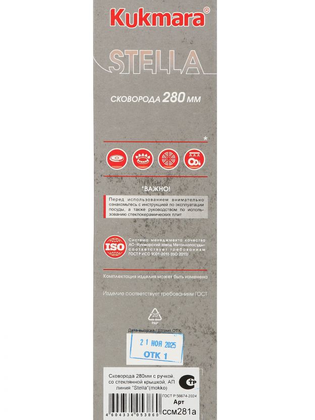Часто спрашивают: какой сковородой лучше жарить мясо или рыбу, как выбрать универсальную сковороду для дома? Модель Kukmara Stella — это глубокая сковорода с толстым дном, которая обеспечивает равномерный прогрев и предотвращает деформацию. В отличие от штампованных аналогов, литой алюминий не боится частого использования и перепадов температуры. Сковорода подходит для газовых, электрических и стеклокерамических плит, но не предназначена для индукции.