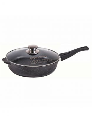 Сковорода литой алюминий, 28 см, антипригарное покрытие, Мечта, Гранит black, с крышкой, съемная ручка, с028802