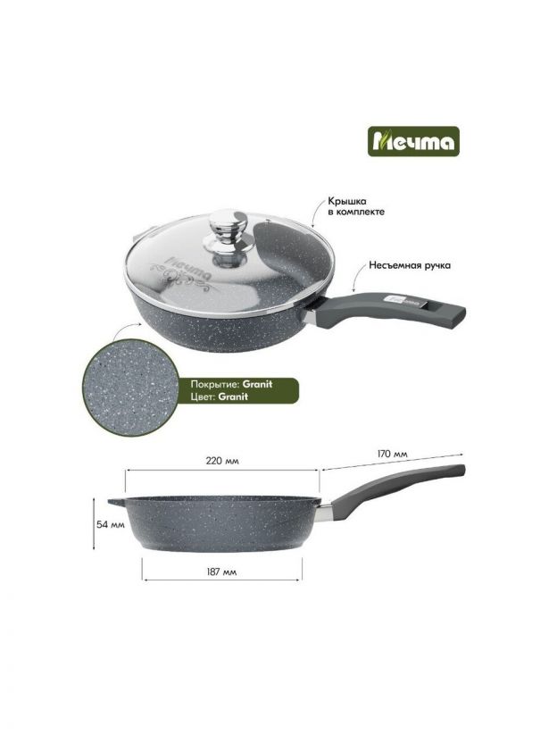 Сковорода литой алюминий 28 см с гранитным антипригарным покрытием Мечта — жарьте без масла, готовьте вкусно и легко, экономьте время на уходе!