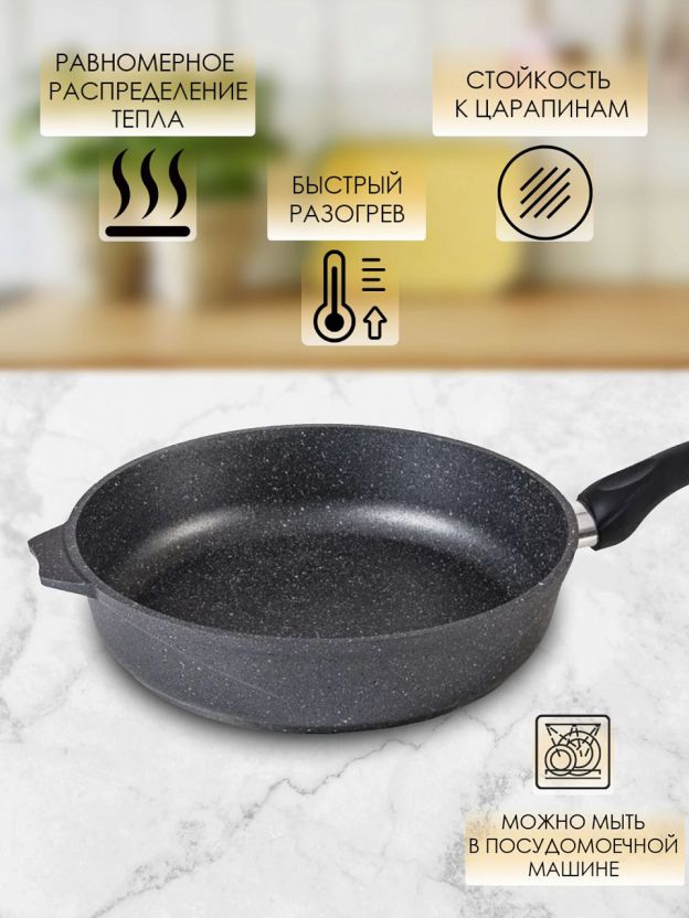 Сковорода литой алюминий 28 см Мечта Гранит — антипригарная классика для идеальной жарки без масла. Толстое дно, долговечность, универсальность.