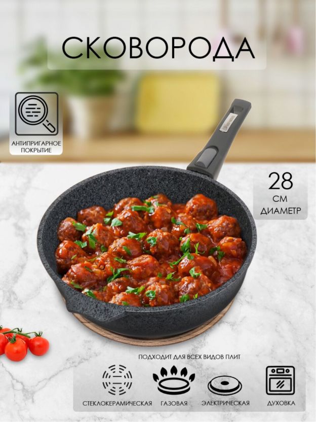 Сковорода литая алюминиевая 28 см Мечта Premium grey — антипригарное покрытие “под камень”, съемная ручка, для дома и дачи по выгодной цене.