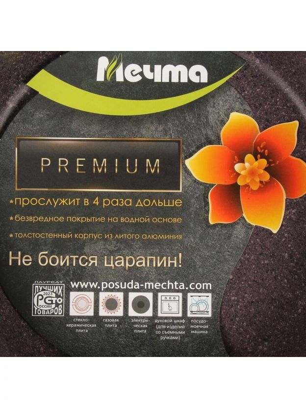 Закажите сковороду Мечта Premium violet с антипригарным покрытием и съёмной ручкой — получите универсальный кухонный инструмент с гарантией качества и быстрой доставкой.