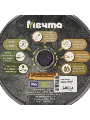 • Оптимальный диаметр 28 см, литой алюминий — прочность, равномерный нагрев, долговечность до 7 лет.
