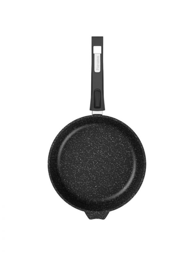 Сковорода литой алюминий 30 см с антипригарным гранитным покрытием и съемной ручкой: жарьте без пригорания, экономьте время на уходе, готовьте для всей семьи.