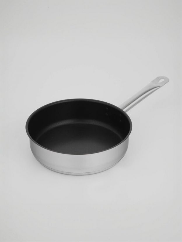 Сковорода из нержавеющей стали 24 см с антипригарным покрытием Xylan — оптимальное решение для дома и профессиональной кухни. Подходит для индукции, легко моется, универсальна для любых блюд.