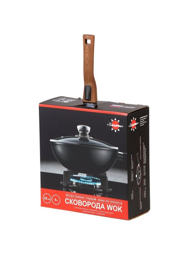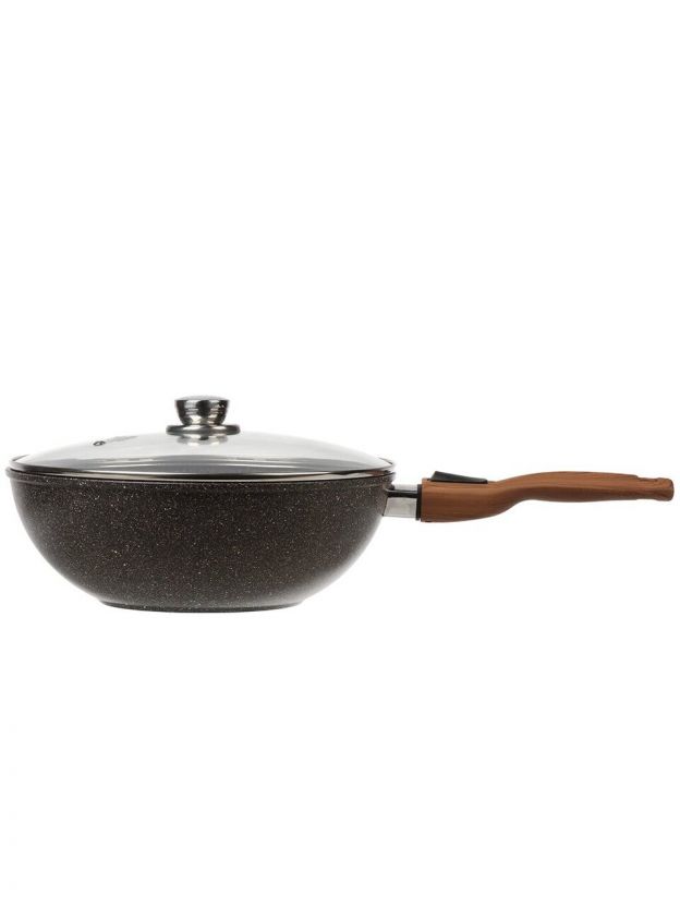 Сковорода-вок Гардарика Мегалит 18, 28 см: антипригарное гранитное покрытие, литой алюминий, крышка и съемная ручка — идеальный выбор для кухни и дачи.