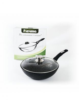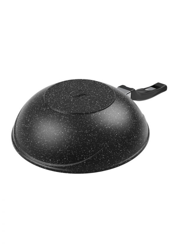 Сковорода-вок литой алюминий, 28 см, антипригарное покрытие, Мечта, Гранит black, с крышкой, с78802