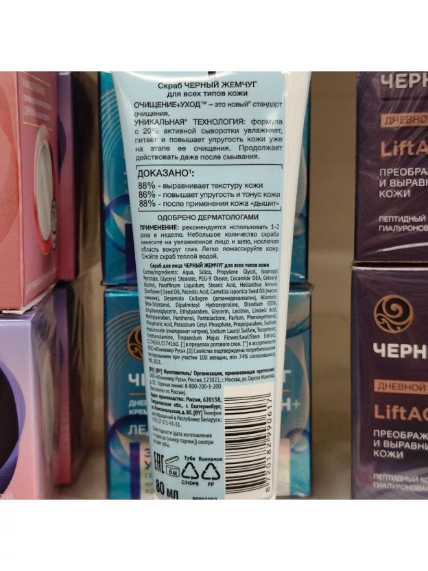 Скраб для лица Черный жемчуг, 80 мл, очищающие, для всех типов кожи
