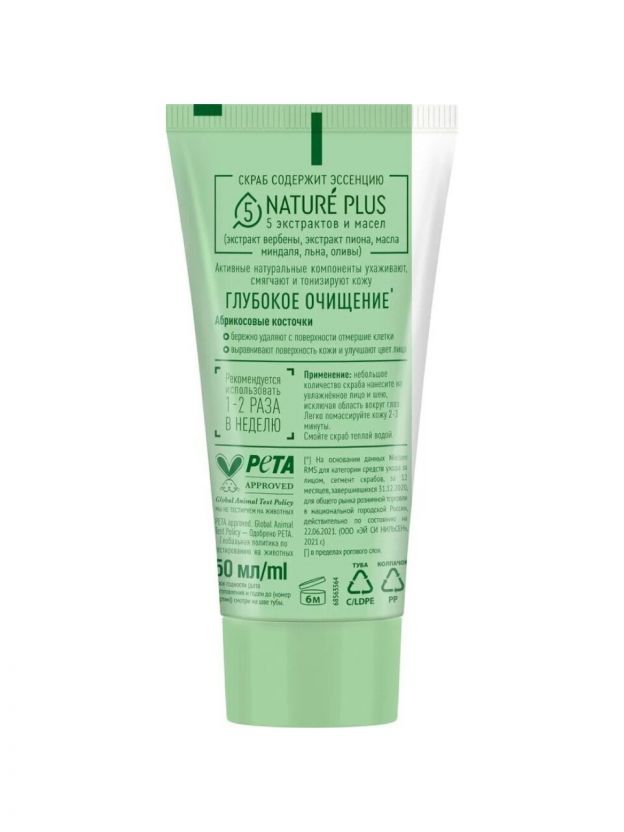 Абрикосовый очищающий скраб бережно и глубоко очищает кожу от загрязнений, нежно удаляет отмершие клетки, очищает загрязнённые поры, не раздражая кожу. Освежает, смягчает, улучшает цвет лица, способствует обновлению клеток. Активные натуральные компоненты выравнивают кожу, делая ее гладкой и сияющей. Преимущества: Кожа бережно и глубоко очищена. Цвет лица свежий и ровный. Одобрено дерматологами.