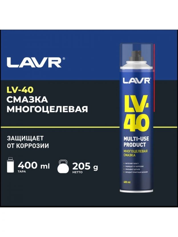 Смазка автомобильная многоцелевая, Lavr, LV-40, 400 мл, аэрозоль, Ln1485