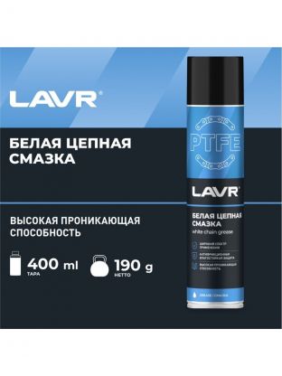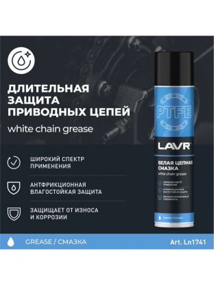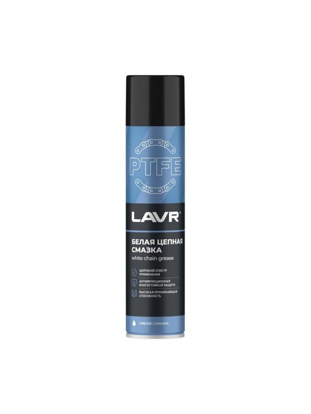 Смазка цепная Lavr, с PTFE, белая, 400 мл, аэрозоль, Ln1741