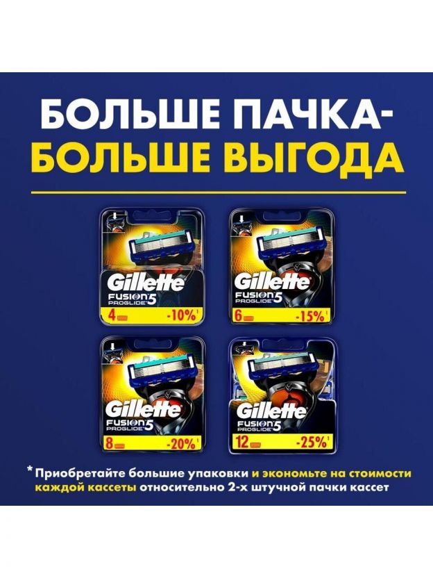 Сменные кассеты для мужской бритвы Gillette Fusion ProGlide с 5 лезвиями с уменьшающим трение покрытием обеспечивают бритье, которое вы едва почувствуете. Точный триммер на обратной стороне удобен для обработки труднодоступных мест, таких как бакенбарды и участки кожи над верхней губой. Усовершенствованная смазывающая полоска с еще большим количеством смазывающих компонентов. Одной сменной кассеты хватает на один месяц бритья.