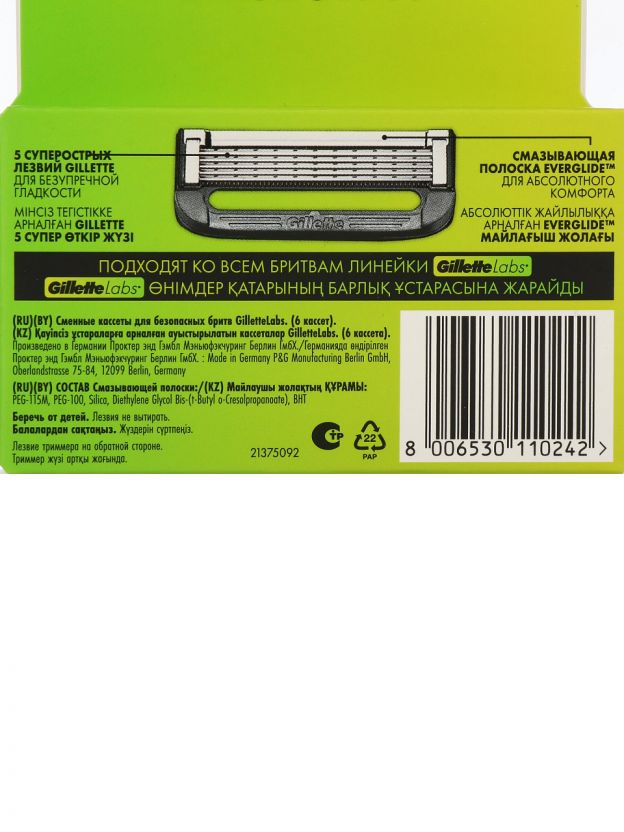 Кассеты совместимы только с бритвенными станками серии Gillette Labs, не подходят к другим моделям.