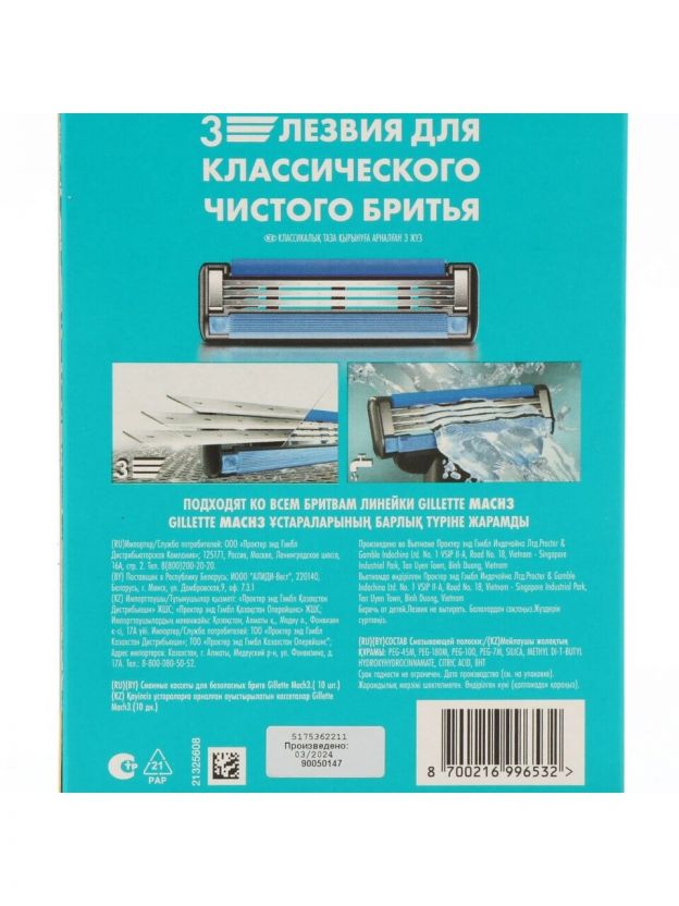 Сменные кассеты для бритв Gillette, Mach3, для мужчин, 10 шт, 0050002322