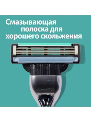 Три лезвия прочнее, чем сталь, остаются острыми дольше, а улучшенная увлажняющая полоска шире и выделяет больше смазывающих веществ.