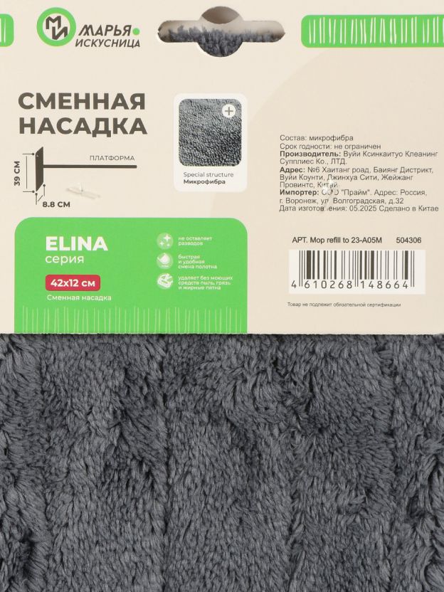 Сменная насадка для швабры из микрофибры 42х12 см от бренда «Марья Искусница» — оптимальный выбор для тех, кто ищет, какую насадку выбрать для эффективной уборки без разводов и ворса. Благодаря прямоугольной форме и универсальным размерам, она легко крепится на большинство плоских швабр с платформой 39х8.8 см. Микрофибра глубоко захватывает пыль, шерсть и мелкие частицы, что особенно актуально для аллергиков и владельцев домашних животных.
