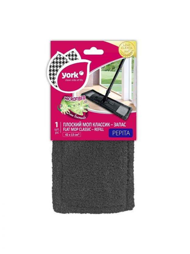 Сменный блок для швабры микрофибра, 42х13 см, плоский, прямоугольный, черный, York, Стайл Пепита, 081850