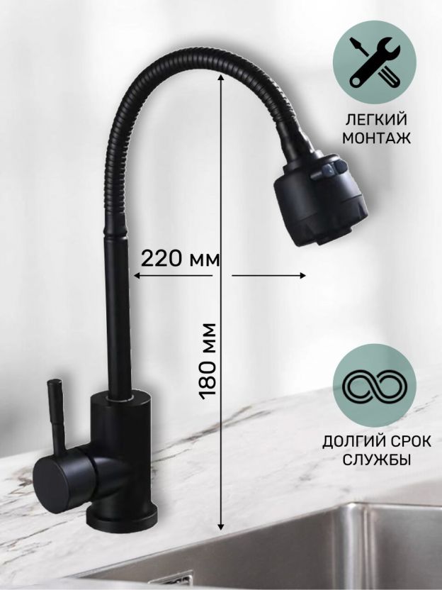 Модель совместима с большинством кухонных моек и не требует сложной установки. Как использовать смеситель с гибким изливом? Просто поверните носик в нужную сторону — это удобно при мытье овощей, фруктов, детской посуды. Подходит ли для дачи? Да, благодаря прочности и универсальному креплению на гайку, смеситель легко устанавливается даже в условиях ограниченного пространства.