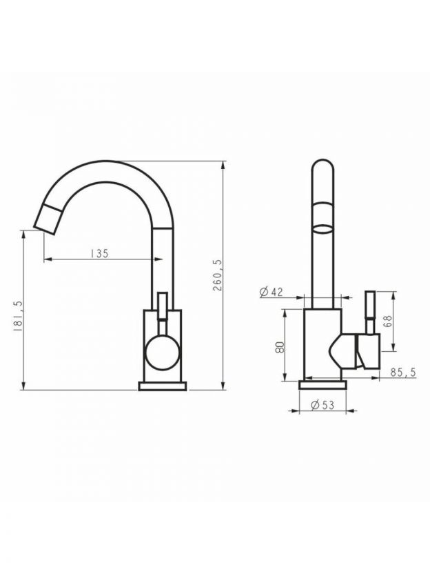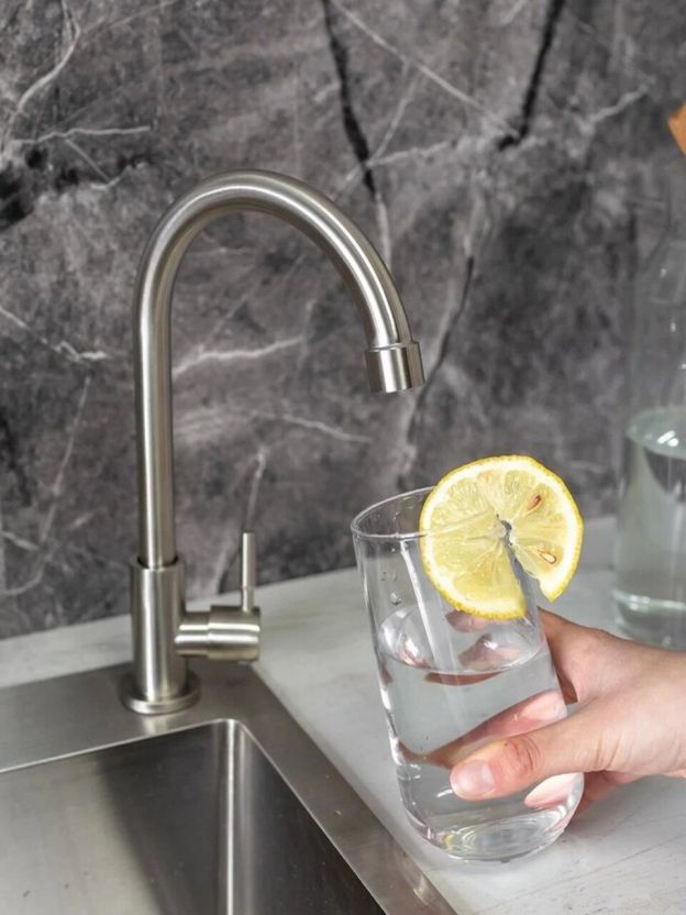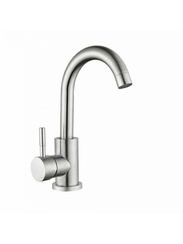 Материал корпуса — нержавеющая сталь, не боится влаги и перепадов температуры. Высокий поворотный излив удобен для любых сценариев: мытьё посуды, наполнение ёмкостей, уход за растениями.