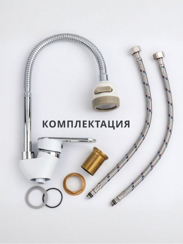 Смеситель для кухни Aqwin с гибким изливом (белый, A58274-7): идеальное решение для удобства, стиля и экономии воды — монтаж за 10 минут.