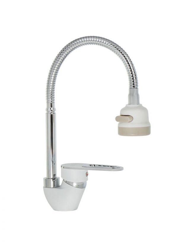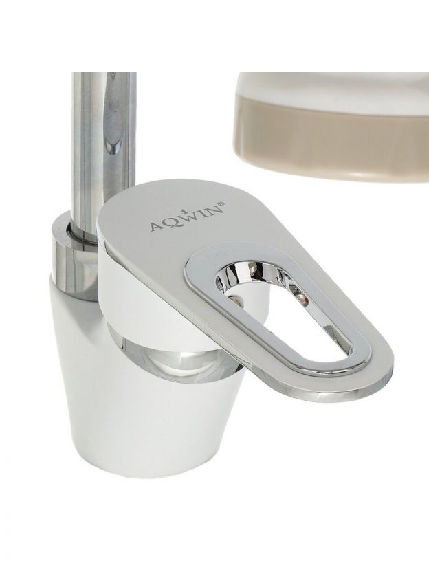 Смеситель для кухни, Aqwin, гибкий излив, с картриджем, белый, A58274-7