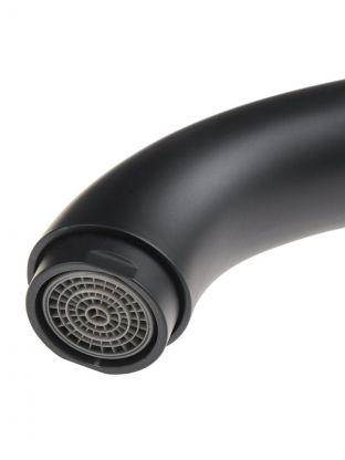 - Современный матовый черный смеситель с поворотным изливом: гармония стиля и функциональности