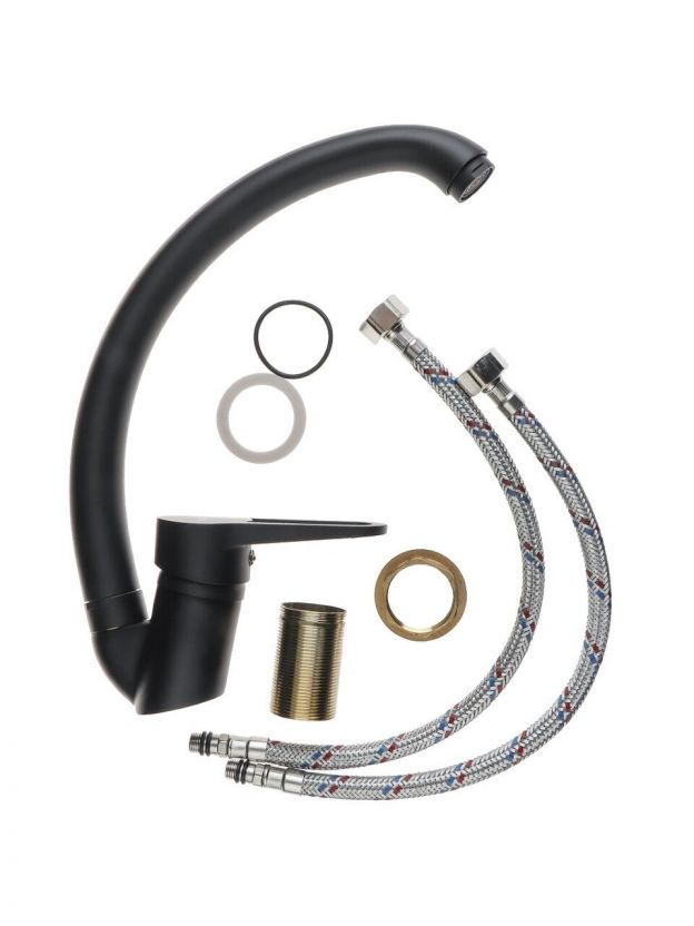 Смеситель для кухни Aqwin A59270-6: стильный черный дизайн, керамический картридж, гибкая подводка 35 см — оптимальное решение для современной кухни
