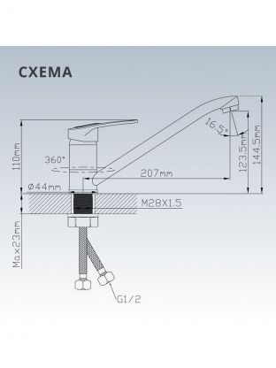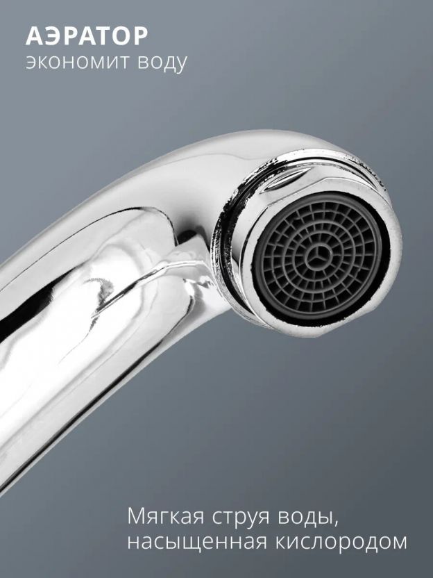 - Длинный поворотный излив 20,7 см из цинкового сплава — удобно мыть крупную посуду, срок службы увеличен