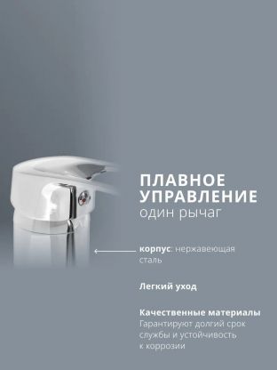 - Современный дизайн и надежный керамический картридж — плавное управление и отсутствие подтеканий