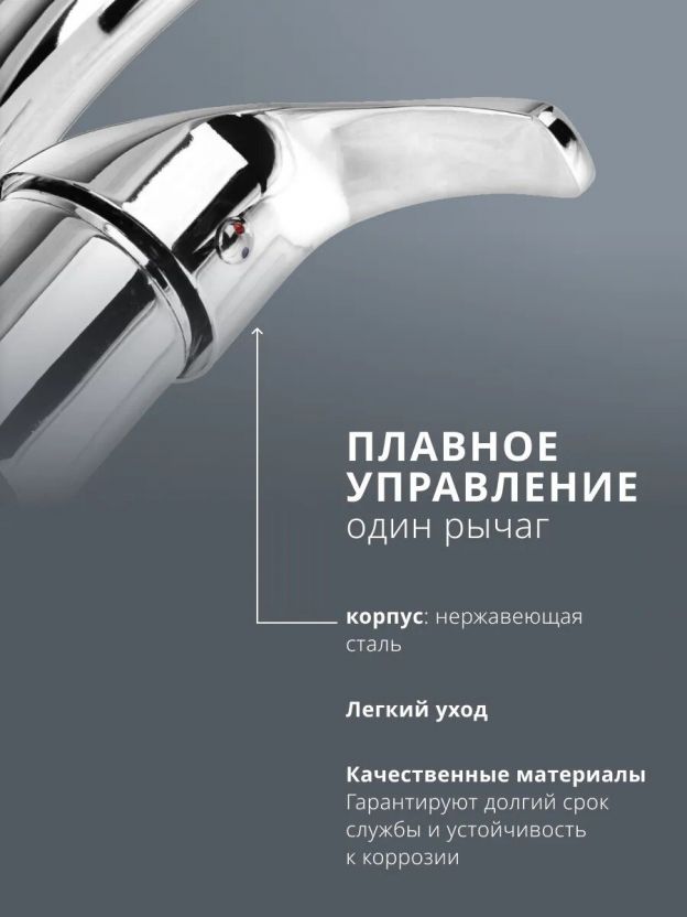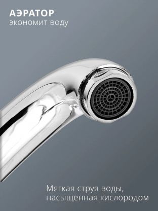 - Технология однорычажного управления и поворотный излив — легкая регулировка температуры и напора воды одной рукой