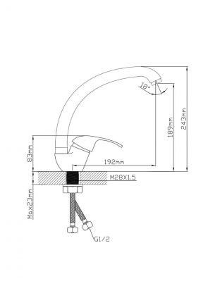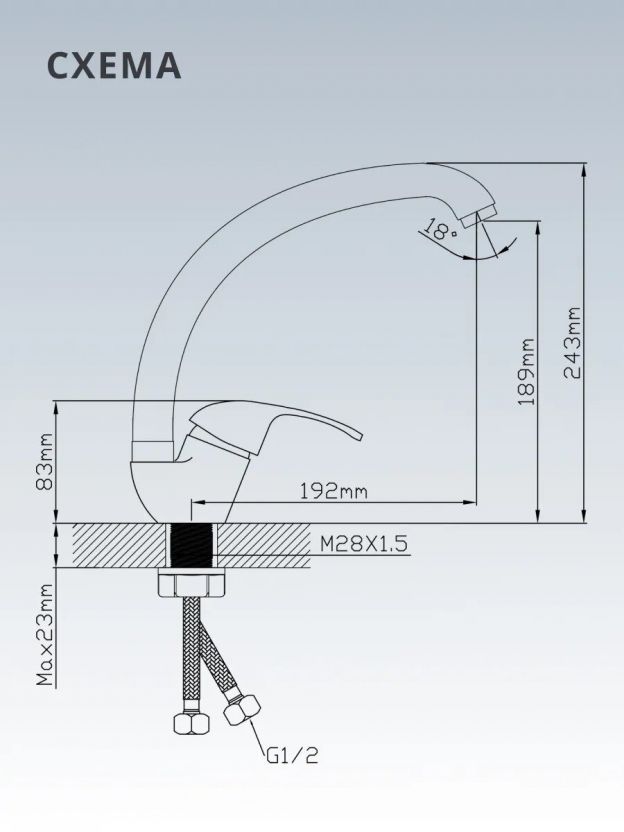 Для установки требуется одно отверстие диаметром 35 мм, стандартная подводка шланга 1/2".