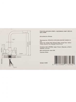 Какой размер и параметры у смесителя Aqwin A4498?