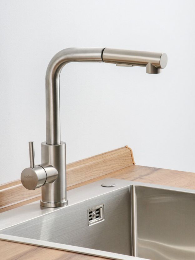 Смеситель для кухни Aqwin A0047S: долговечная нержавеющая сталь, экономия воды, стильный сатин — идеальный выбор для современной кухни