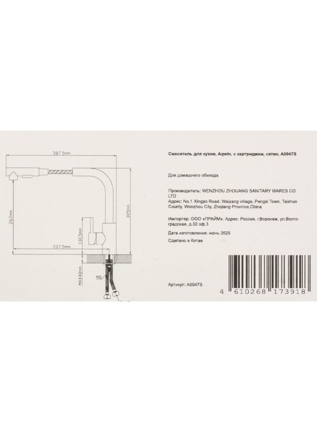 Если вы ищете, какой смеситель лучше купить недорого для дачи или дома, обратите внимание на Aqwin A0047S: он сочетает стиль, эргономику и выгодную цену. Гибкая подводка в комплекте и гарантия 12 месяцев — дополнительное преимущество для покупателей, ценящих качество и удобство.