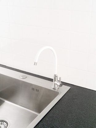 • Гибкий излив — удобно направлять поток воды для мытья посуды и овощей, минимизируя брызги