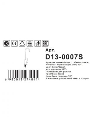Смеситель для кухни, Diadonna, гибкий излив, с кран-буксой, для одного типа воды, D13-0007S
