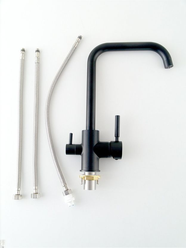 Если вы ищете, какой смеситель лучше для кухни с фильтром, обратите внимание на Diadonna D49-19042BL: современный стиль, монтаж в одно отверстие, матовая черная поверхность, простая установка, стандарт подводки 1/2". Модель не имеет пластиковых деталей корпуса, что повышает срок службы даже при интенсивном использовании.