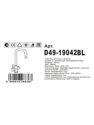 Смеситель для кухни, Diadonna, с картриджем, с подключением к фильтру, D49-19042BL