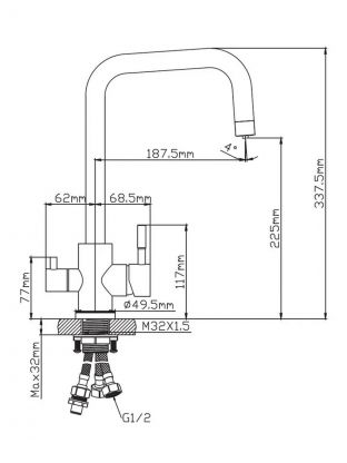 Высота излива — 22,5 см, длина — 18,8 см. Это средний высокий излив, удобный для большинства кухонь.