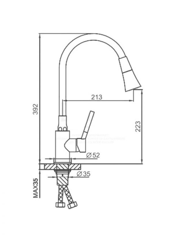 Длина излива — 21,3 см, высота — 22,3 см. Такой размер оптимален для большинства кухонных моек.