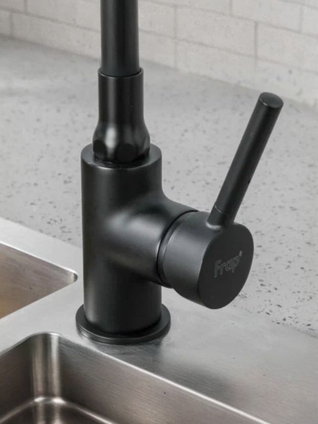 Смеситель для кухни Frap F4044-6 — это сочетание функциональности и современного стиля. Благодаря гибкому изливу (длина 21,3 см, высота 22,3 см) вы легко направите поток воды туда, где это нужно. Матовый черный цвет и круглая форма впишутся в любой интерьер, а латунный корпус гарантирует долговечность даже при интенсивном использовании. Если вы ищете, какой смеситель выбрать для кухни с одной мойкой, обратите внимание на эту модель: монтаж через 1 отверстие (диаметр 52 мм) позволяет установить смеситель быстро и без дополнительных затрат.