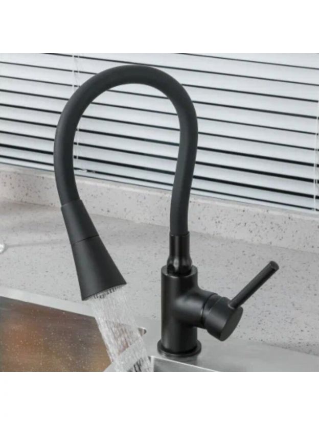 Гибкий излив позволяет менять направление воды, облегчая мытье крупной посуды и уборку рабочей зоны.