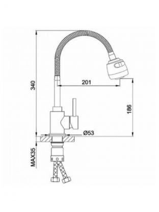 - Гибкий излив 20,1 см — удобно мыть посуду и наполнять высокую посуду, легко менять направление струи