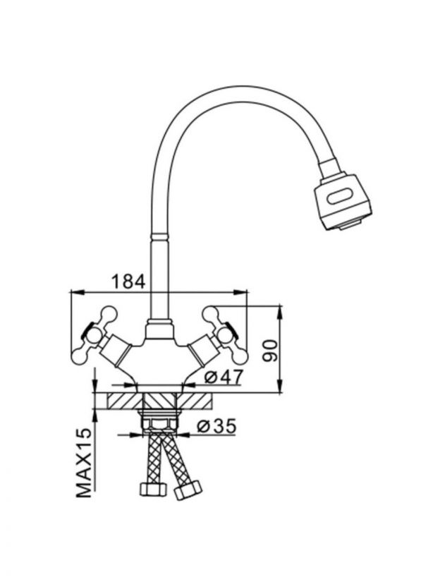 Гибкий излив длиной 20,7 см облегчает мытье крупной посуды, наполнение высоких емкостей и уход за мойкой, делая использование смесителя максимально удобным.