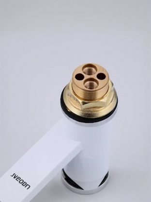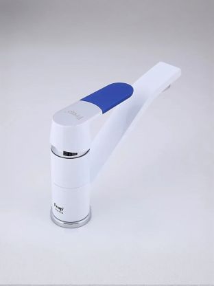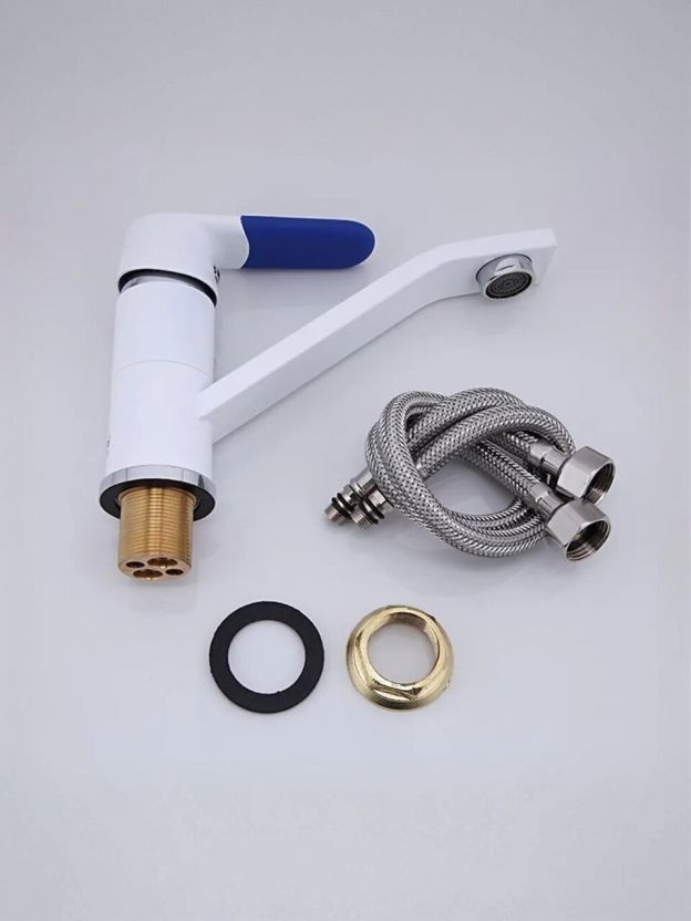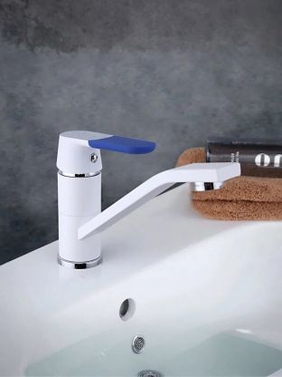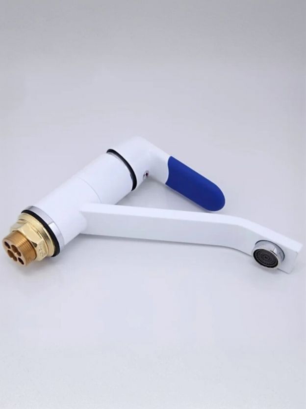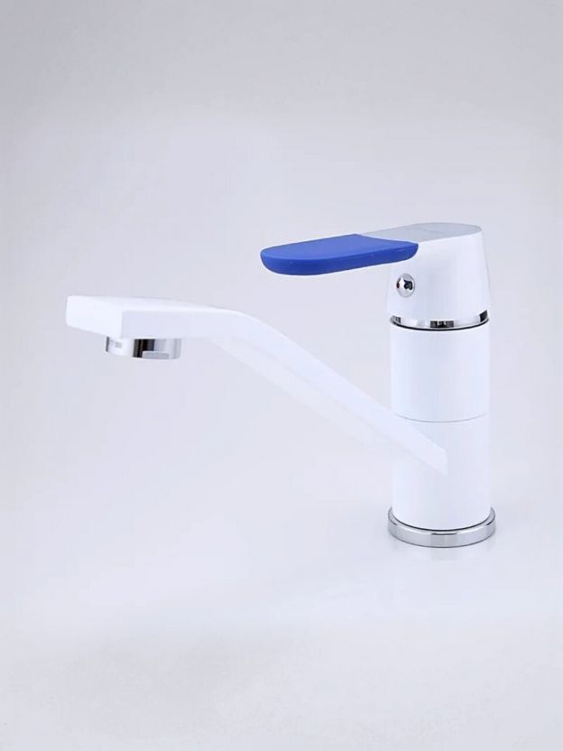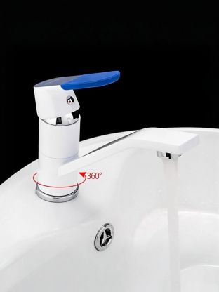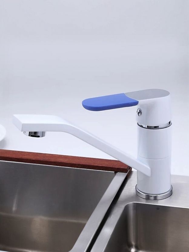 - Современный дизайн и практичность: белый глянцевый корпус из латуни с поворотным изливом для максимального удобства